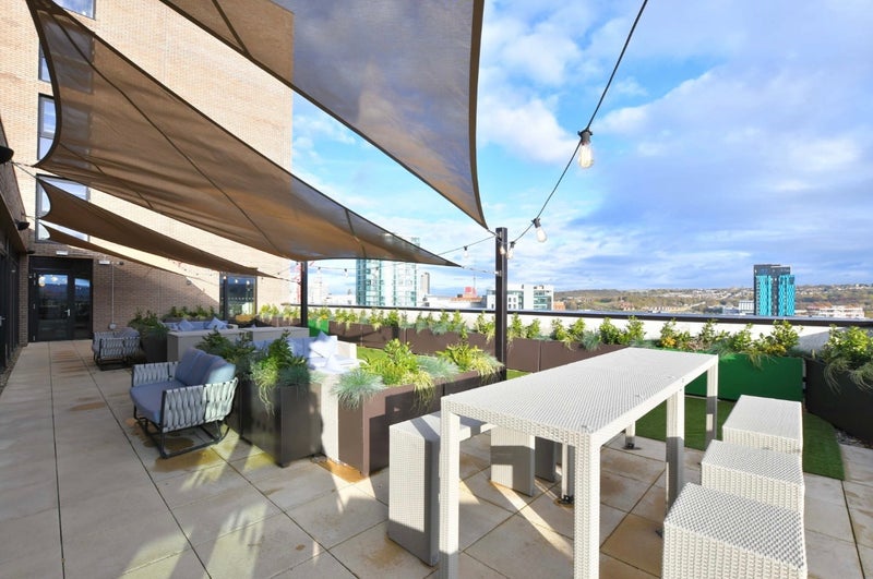 Amenities include gym, cinema room, co working spaces, 24HR security, communal kitchen and 9th floor roof terrace.