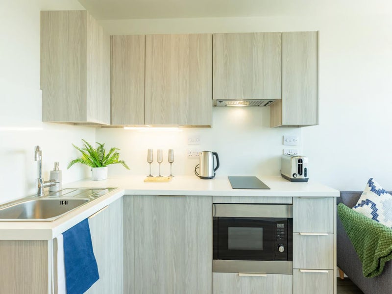 Unlike most studio flats, this one contains a corridor structure which means the sleeping and living areas aren't right next to each other!