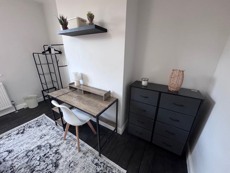 Convenient store at the end of the road, with Tesco’s and Aldi less than a mile away (10min walk). The room includes all your furnished essentials, as well as a multi use desk. I’m a live in landlord and take huge pride in keeping and maintaining a clean house and most importantly a friendly/respectful atmosphere for everyone. If you are interested, feel free to drop me a message with a brief summary of yourself and your current work/living situation. Thank you 😁