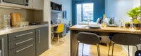 For students only - student ID required. This spacious studio offers a double size bed, bedside table, wardrobe and drawers in a 27m² luxury student room, which also comes with a 32” TV, a desk with desk chair and USB ports, a pin board to keep you organised, and a large tub chair to relax in! Over at the kitchen area, you’ll find a combi oven, 2-ring hob, fridge/freezer and breakfast bar, and across the studio, a new, fully-fitted en-suite with shower. Don’t forget, that as a resident at Crown House, you also enjoy exclusive privileges like access to the fine dining room, private cinema, fitness suite and gaming booths. Get in touch to book now – these rooms are filling up fast!