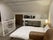 The room has it’s own staircase with a self closing door at the bottom and is fully furnished with a comfortable double bed, large teacher style pedestal desk with office chair, super comfy leather armchair and footstool and a large walk in wardrobe. The room has its own kitchenette with sink, microwave, hob, kettle and toaster as well as fridge and freezer.