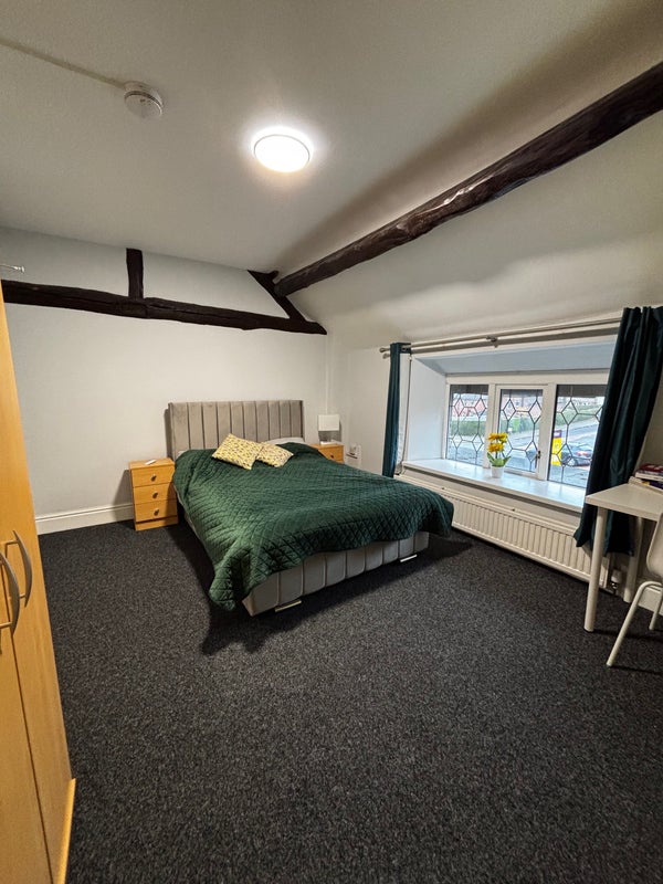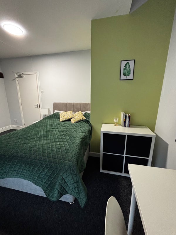 • The Rooms: feature a comfortable double bed, rail/wardrobe, chest of drawers, and a dedicated workspace (desk and chair).
