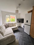 The kitchen living area is equipped with 2 fridge freezers, washing machine, microwave, kettle and toaster. The living area has a 50 inch TV and sofa for communal living space. The current tenants are a clean and tidy bunch that get along well.