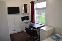 Our stylish accommodation is fully furnished to a high standard. The rooms are rented out individually with a 32-inch TV, full-size double bed, drawer, desk & chair, and electric heater which you can set on a timer. The room comes with a sink and mirror cabinet too