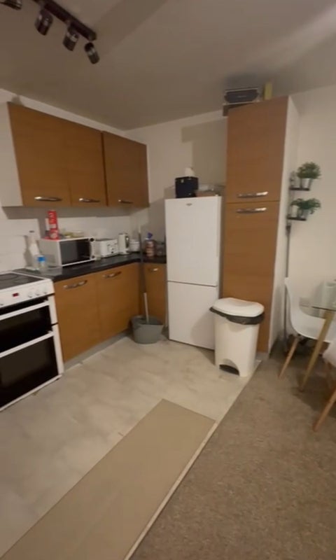 Open plan communal kitchen and living room area.