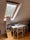 Refurbished loft room in end terrace house, available from 24/4.. 2 Velux windows and blinds, double bed,, 2 chest of drawers, standing cloth rail, tray tables, display unit, wall mirror, desk and 4 chairs.