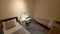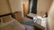 The room is suitable for single or double occupancy and can be arranged with either two single beds or one double bed. It includes a desk and storage, making it practical for both living and working from home.