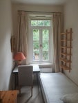 Single comfortable bedroom on the first floor, specious, with big window high ceilings, in the renovated Victorian house is recently available.