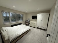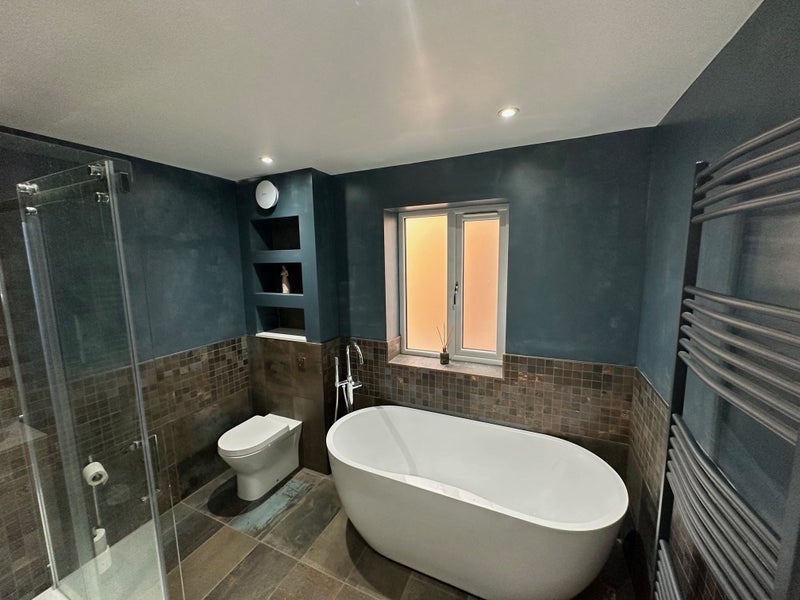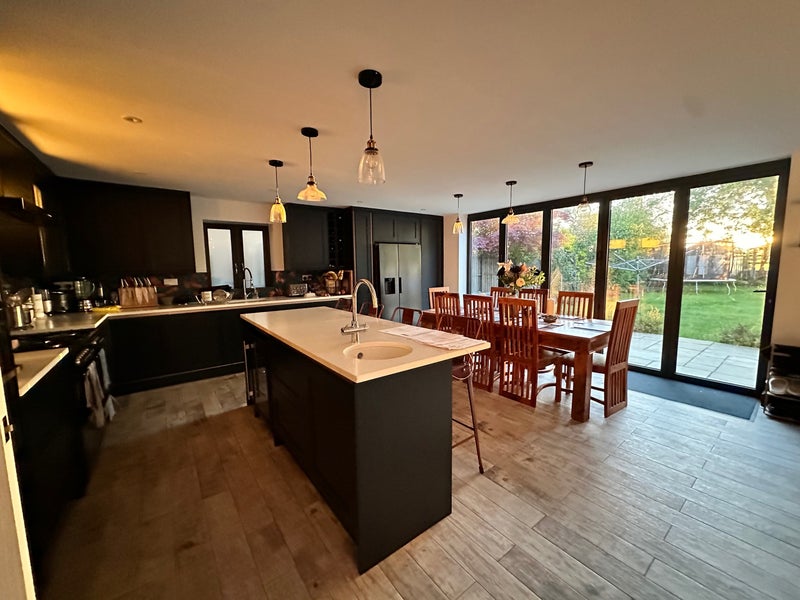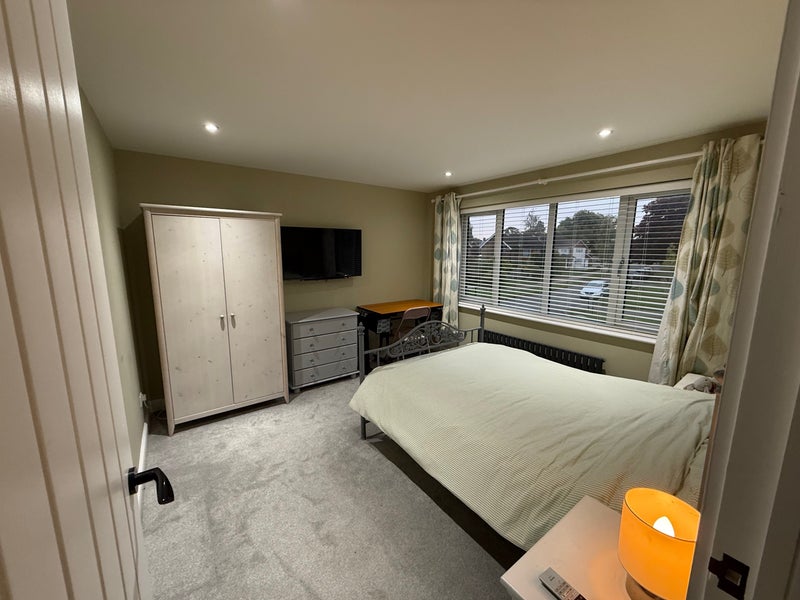 The house is in a quiet road near parks, fields and the river, yet close to all amenities. The detached house is a large family home with six bedrooms and four bathrooms. The main bathroom is primarily for two rooms, as all other bedrooms have en-suites. The room comes with smart tv and super-fast Wi-Fi (throughout the whole house and garden). In addition there is a basic gym room to use at reasonable times. The house has a substantial kitchen/dining/family room which is available to cook and eat in. There is a separate living room, a utility room, downstairs WC, a 100 ft garden with patio area by house and a decked area at the end of the garden with fast Wi-Fi. There is easy parking outside the house on the road. This is a relaxed family home, with a lovely friendly family dog.
