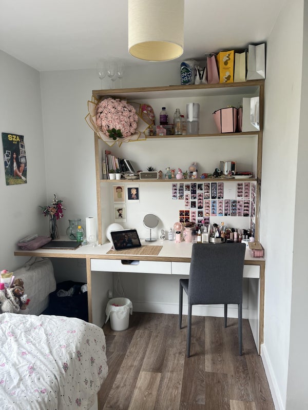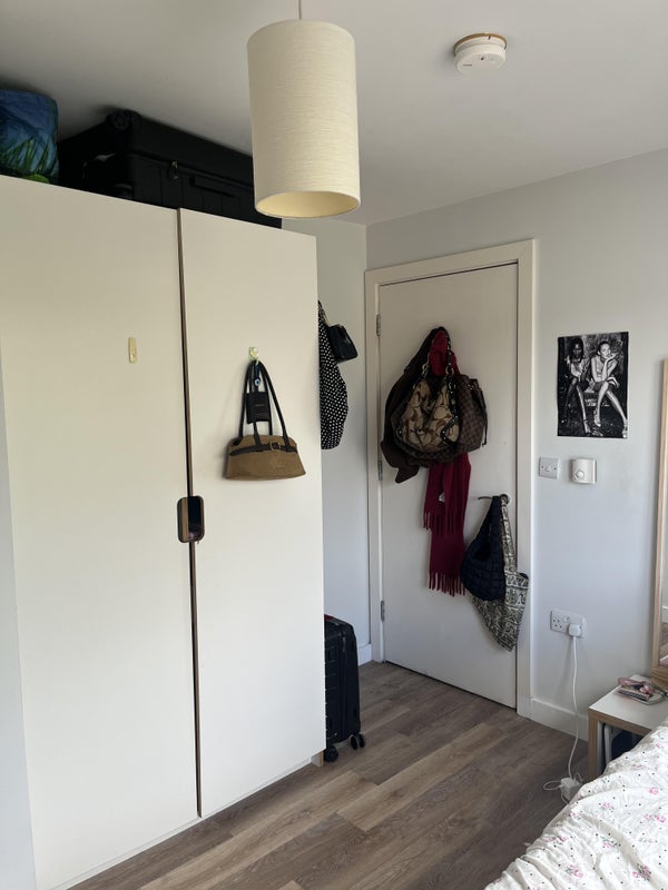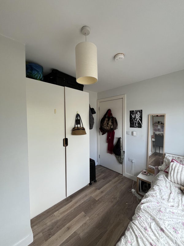 - Fully furnished with bed, bedside table, desk, shelving units and wardrobe
