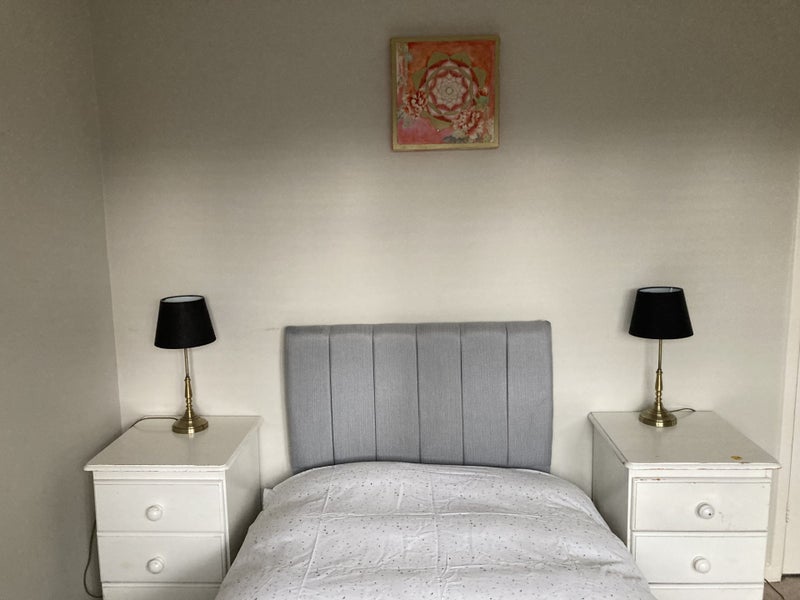 The available room is a pleasant large single room (could accommodate a double bed if preferred) & includes: fitted carpet, built-in wardrobe, bedside cabinets, bedside lamp, luxury bed. Electric blanket for extra warmth during winter months. There is a separate toilet & bathroom which you will share with one other female house-mate.