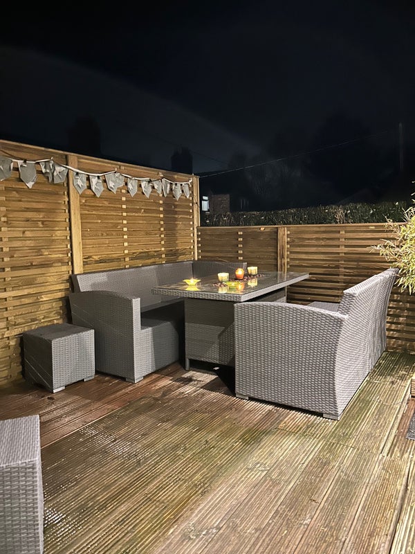 Gorgeous little self-contained en-suite double bedroom (12ft x 9ft and 6ft x 6ft) with private deck with outside corner sofa and fire pit table.