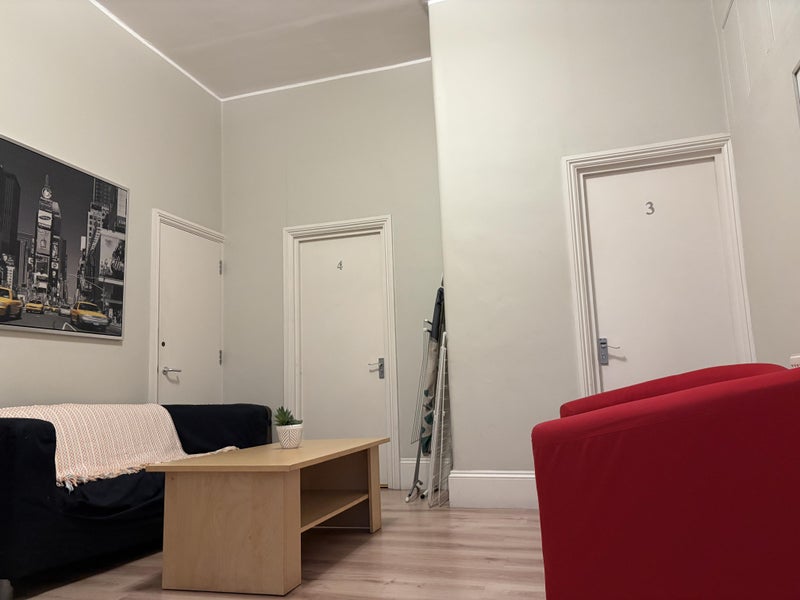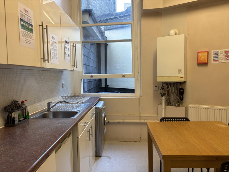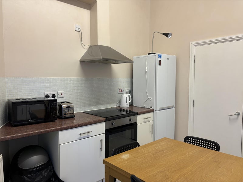 The bedroom comes fully furnished with a double bed, a wardrobe, desk, chair, blinds, and a TV. There is a living room and a spacious kitchen with a dining area, equipped with a washing machine and dryer, microwave, kettle, toaster, iron, and ironing board. All kitchen utensils, crockery, and cutlery are provided. Bed linen and towels are supplied free of charge and changed weekly. A weekly cleaning service takes care of cleaning the entire apartment, so this is managed for you. There is a resident representative on-site and CCTV, alongside an office within the apartment complex that will collect packages when you are not at home. The price includes utility bills, weekly cleaning of bedrooms and common areas, council tax, TV licence, and Wi-Fi.