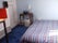 The room has a double bed, clothing rail, computer desk and a small balcony.