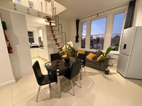 Guests have access to a large open plan kitchen living and dining area within the apartment. In addition there is a separate dedicated workspace located on the mezzanine level offering a quiet professional environment ideal for working from home ensuring the main living space remains shared and available for all guests.