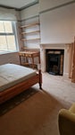 Quiet and spacious double room with built-in wardrobe, desk, and double bed frame (no mattress provided for hygiene reasons, tenant brings own).