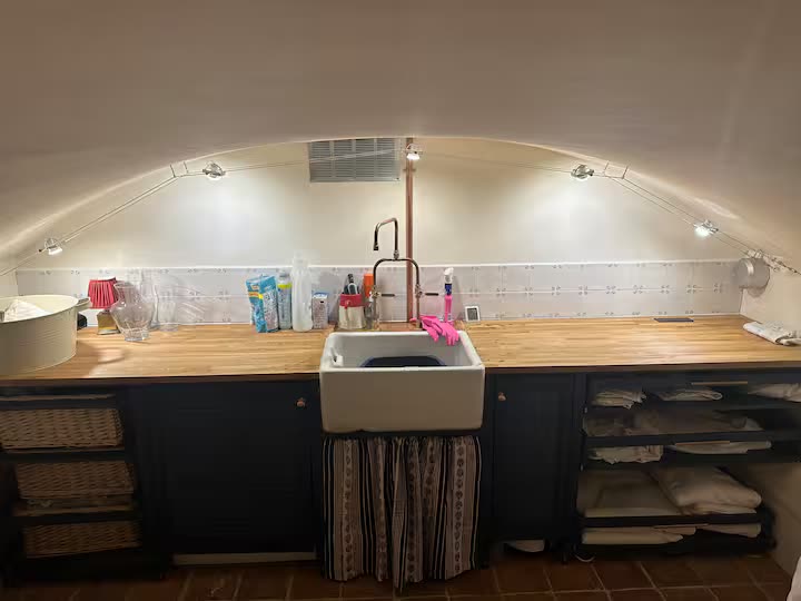 The hallway leads up to a utility room and a first bedroom. Through the first bedroom you access a second bedroom and the landing for stairs up to the kitchen, living room and main bathroom. There is a small toilet on the same level as the bedrooms.