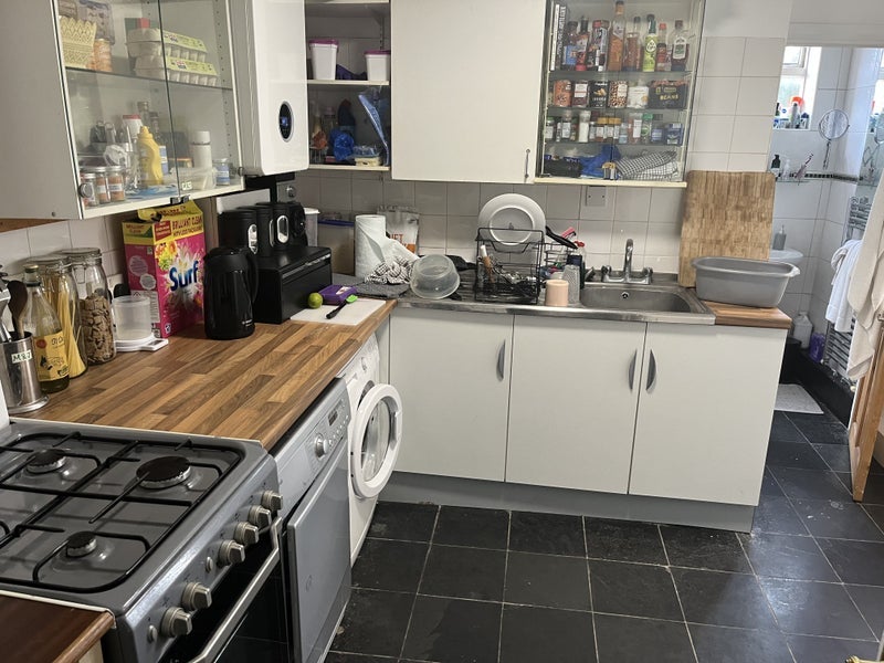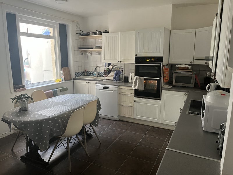 The shared kitchen is large and fully equipped (large fridges, double ovens, hobs, microwave, washing machine, tumble drier, etc). There are 2 full bathrooms plus one separate toilet. A small lounge on the ground floor leads to a large peaceful back garden. There’s also a large shed in the back garden where you can store bikes and other stuffs.