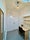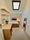 Refurbished tiled bathroom has a good pressured shower, large roof window and washing machine.