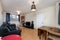 Large living/dining room has a large sofa bed, dining table and chairs, large HD TV and unlimited, fast (1Gbps) mesh wireless broadband with good signal throughout (Community Fibre).