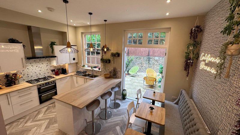 🔵 HUGE new dining kitchen with 2 x fridge freezers, 2 x washer driers AND dishwasher, coffee machine, large breakfast bar with cool high stools - you'll love it!