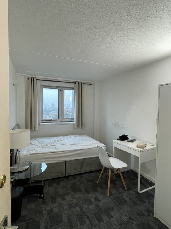 The room is fully furnished with a comfortable double bed, desk, tea table, wardrobe and storage. The soundproofing is excellent, making it very quiet and ideal for both student and working professionals