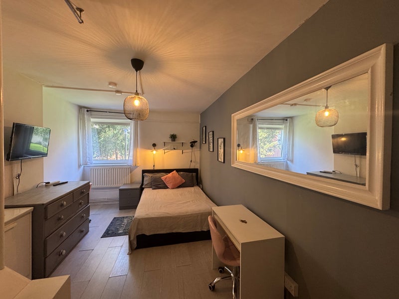Rooms come with a double bed, fully furnished and its own basin. It is suitable for a young working professional or a student. It is a quiet and pretty residential area with Richmond Park a ten minute walk away.