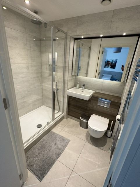 You will have your own private bathroom with loads of storage behind mirrored cupboard doors, heated towel rail and shower with rainfall shower overhead and second low‑level shower head.