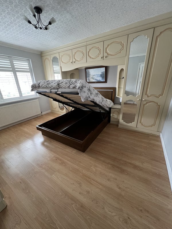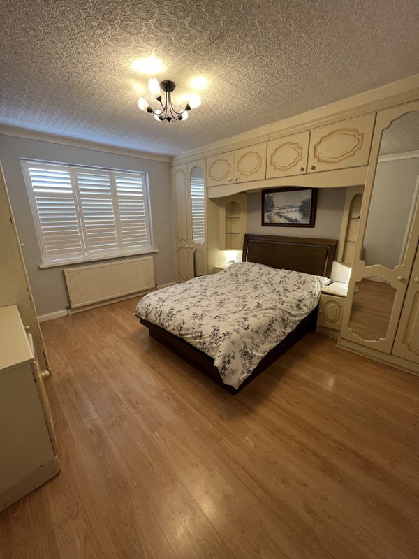 An extra-large double room is available to rent in a friendly shared house. The room is bright and airy with a lovely view of the street and comes with plenty of storage, including built-in cupboards and a storage bed.