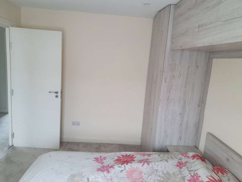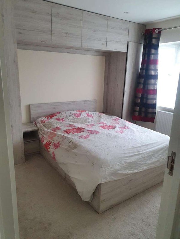 We are looking for a female tenant to take up a south-facing double room. The room is furnished with a double bed and built-in bedside tables, drawers and wardrobes. Bed linen is available on request.