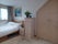 Large bedroom attractively decorated -- with wardrobe, double bed, computer desk and chair.
