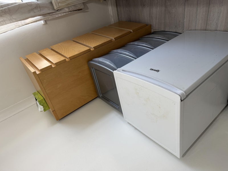 In the kitchen: Fridges, freezers, Electric oven, gas hob, microwave and washing machine