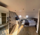✅ Large double loft room with a Juliette balcony overlooking a pretty garden.