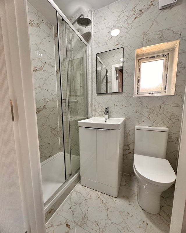New bed/builtin wardrobe/bedside cabinet own bathroom.
