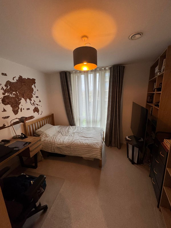 A bright, comfortable single bedroom that’s ideal for someone who wants a calm, tidy space to relax at the end of the day. The room includes: