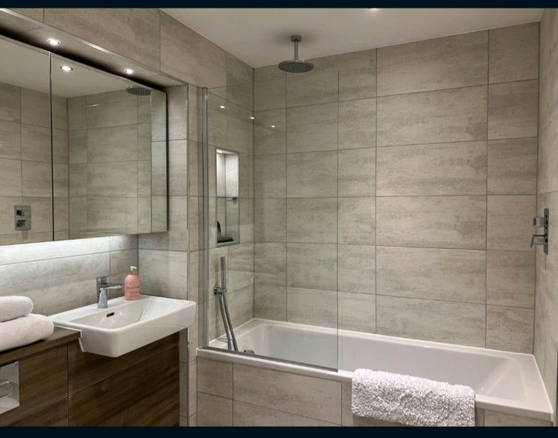 You will have your own private bathroom with loads of storage behind mirrored cupboard doors, heated towel rail and bathtub with rainfall shower overhead and second low‑level shower head.