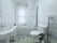 There is a modern shared bathroom, featuring a bath with overhead shower, WC, and wash basin, finished in a clean and neutral style.