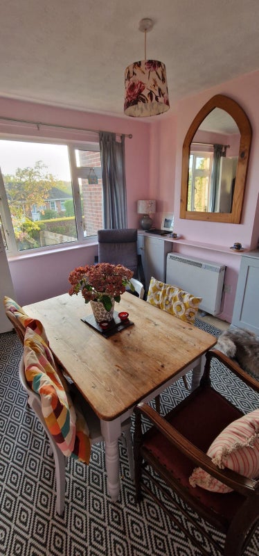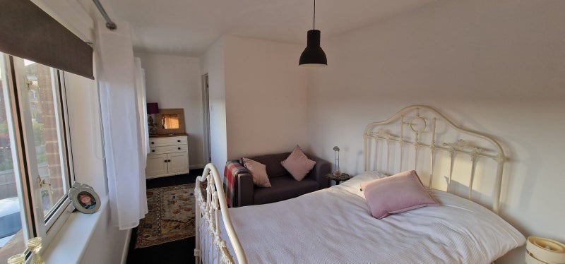 Shared kitchen ,bathroom, dining room. Bills included . On street parking . Garden .Calm friendly dog lives here.