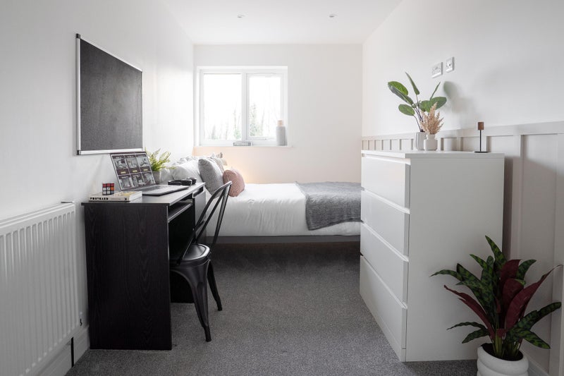 Each bedroom is spacious and fully furnished with a double bed, desk, chair, wardrobe, and chest of drawers, allowing you to move straight in with ease. Every room includes its own private en-suite bathroom featuring a luxury rainfall shower for added convenience and privacy.