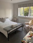 Double bedroom with double bed and wardrobe available to rent for short-term let or longer let by agreement. Own bathroom but not ensuite. Shared kitchen / diner space with TV with one other person (landlady) - nearby amenities, shops, bus stops, railway station and excellent road & transport links. On street parking. Would suit a professional person needing to rent a room. A character who enjoys a peaceful lifestyle. References and evidence of employment will be required. In summary, double bedroom, own bathroom, a shared kitchen / diner space (large), access to the garden. The £525 rent includes most bills payable on the last day of each month.