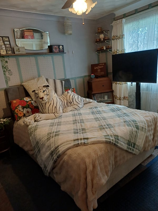 Bedroom has streaming tv. Parking outside house. Garage available for two wheeled vehicles only No pets as I have 5 dogs and parrots also snakes, please dont apply if you dont like dogs, birds or snakes, seriously why would you? Share or household chores in shared areas though in reality a lot is done by me due to dogs and working from home etc.