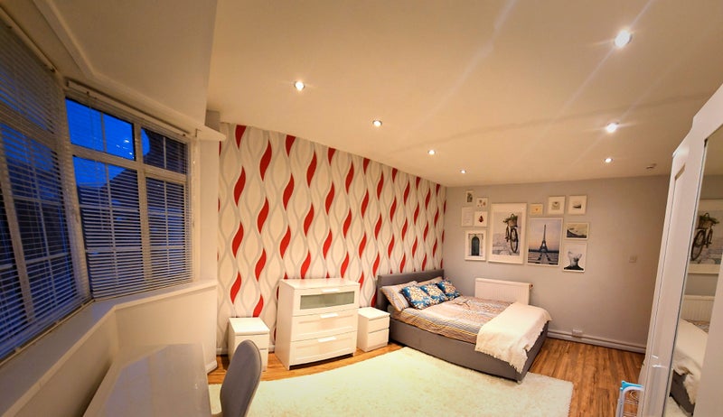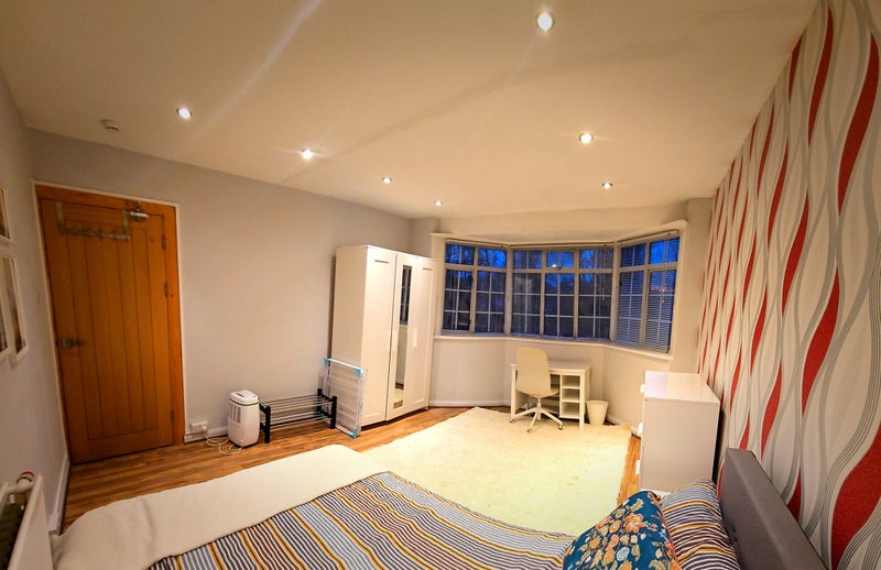 The room features a large bay window providing plenty of natural light and offers more space than a typical room in the area. It is fully furnished with a double bed, wardrobe and chest of drawers, with additional storage space available under the bed.