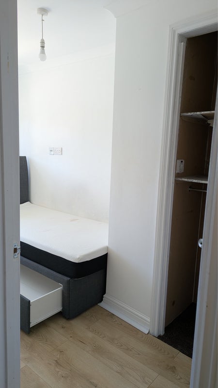 A bright and comfortable single room is available in a clean and well-maintained home. The room is furnished with a single bed, side table and storage space—ideal for one person.