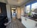 The house has grey carpets throughout, a modern kitchen, and a nice open living space. There’s also a green bathroom with a big white bathtub, plus shower, toilet and sink.