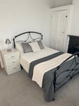 The spacious bedroom comes with a freestanding wardrobe, sofa, cupboard, chest of drawers, desk, bedside table and a
