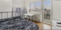 A single room featuring a private balcony situated on the second floor of a private building. This room includes a single bed, chest of drawers, and ample storage space. It is part of a flatshare with one other professional male occupant. Although there is no living room, the kitchen is equipped with a bar table and all modern conveniences.