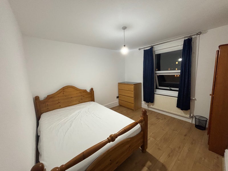 The room: Bright, spacious room with new wooden flooring, Freshly painted, Furnished with wardrobe + chest of drawers