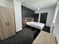 Each bedroom in this modern HMO is elegantly furnished with a bed, wardrobe, drawers, and contemporary bedside lamps. Acoustic sound boarding behind the beds ensures a serene and peaceful atmosphere. All bedrooms are carpeted for added warmth and comfort.