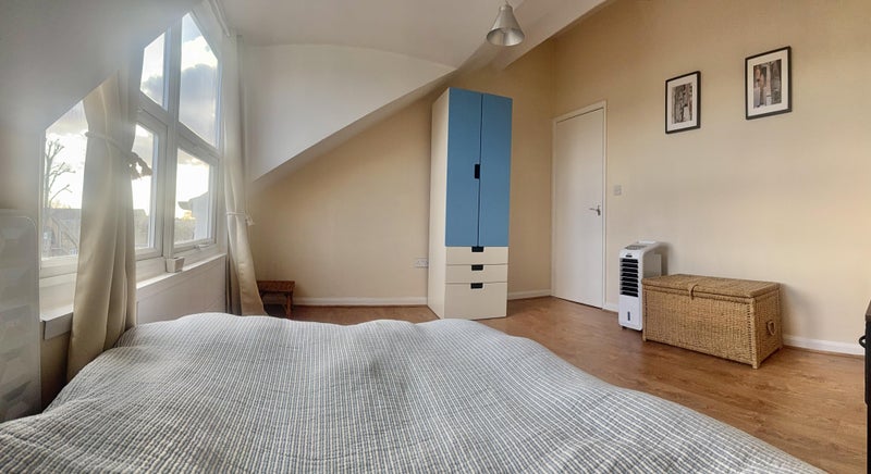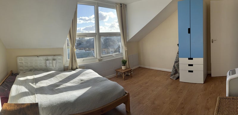 Light-filled top-floor room in a Victorian conversion, with open sky views and good natural light throughout the day. Calm, well-kept flat. Suits someone who wants a stable base, not a busy house share.