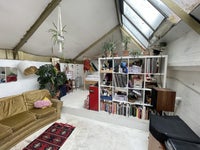 The house - 10 studios in total, a large shared workspace, an equally large kitchen with granite worktops, 5 ring range cooker, bathroom and shower room, laundry room, separate toilet, bike hooks and further storage. Smoking ok but not in communal areas.